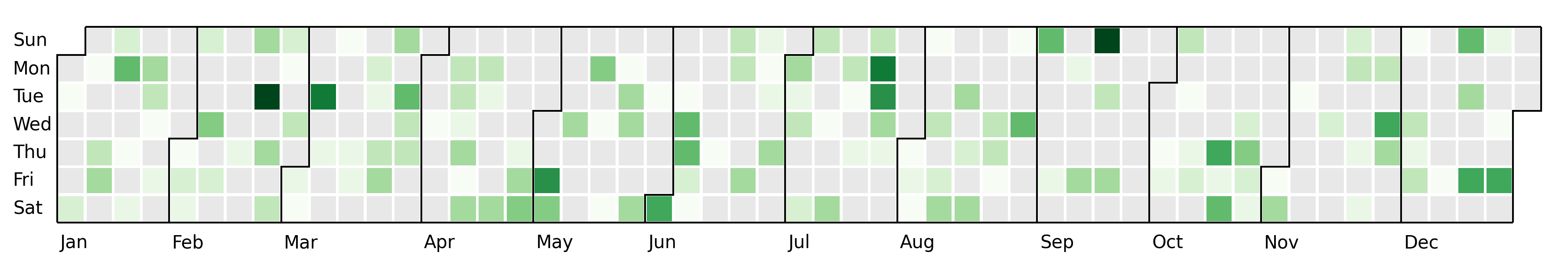 A simple-to-use Python library to build calendar heatmaps with ease. It's built on top of matplotlib and leverages it to access high customization possibilities. They can even be interactive!